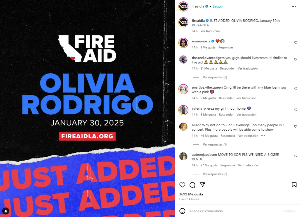 El evento benéfico en apoyo a los afectados de los incendios de Los Ángeles donde participará Olivia Rodrigo se anunció por primera vez a principios de este mes.