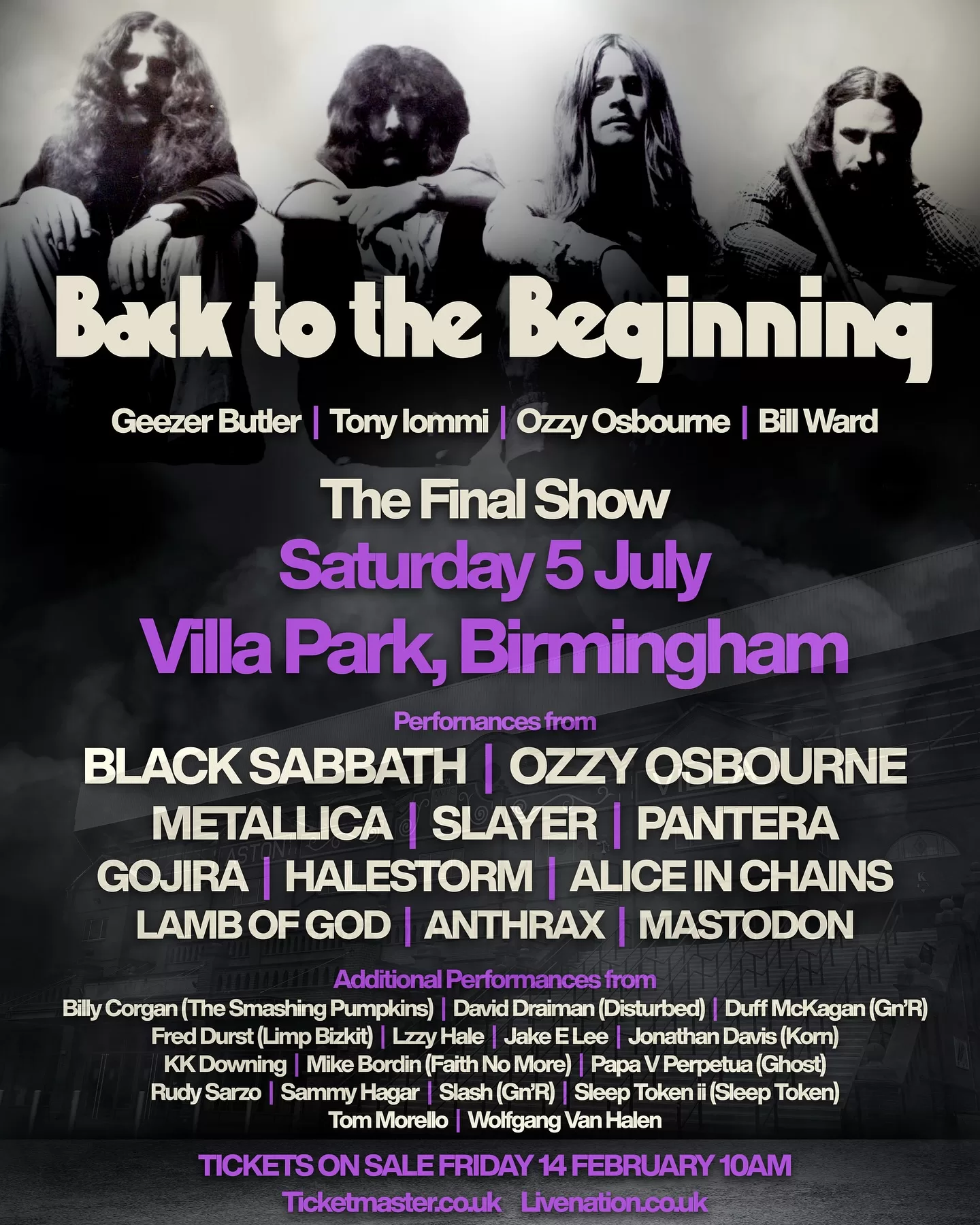 Recordemos que el concierto descrito como “el show final”, el cartel presenta tanto a Black Sabbath como a Osbourne junto con otros grandes nombres como Metallica, Slayer y Anthrax. Otros artistas de alto perfil, como Pantera, Lamb Of God, Mastodon, Alice In Chains, Halestorm y Gojira también están incluidos.