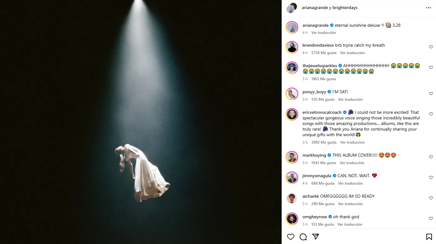 Ariana Grande deja de lado por un momento la actuación para entregar una excelente noticia a sus fanáticos, lanzará la versión deluxe de su último disco. Es así como a través de redes sociales, la artista reveló la fecha exacta del estreno de la versión extendida de Eternal Sunshine.