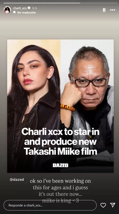 También, la misma artista confirmó la reciente noticia a través de sus historias de Instagram. "Ok, he estado trabajando es esto por años y supongo que ahora está por ahí afuera. Miike es un rey", escribió Charli.