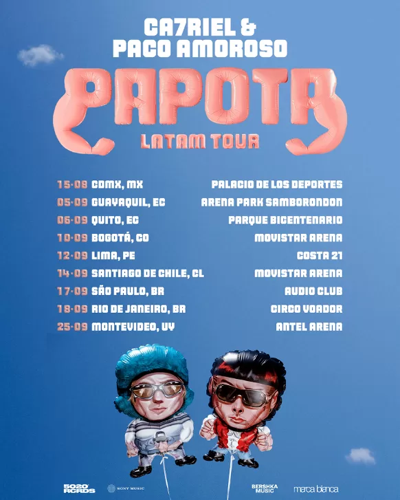 En medio de la vorágine que viene siendo su paso por Estados Unidos, donde tuvieron un debut televisivo nada menos que con Jimmy Fallon. Y un inicio de tour con los dos fines de semana de Coachella, CA7RIEL & Paco Amoroso confirman diez fechas por Latinoamérica para 2025. Hora de que los fans de México, Ecuador, Perú, Brasil, Colombia, Uruguay y Chile saquen los calendarios: el PAPOTA TOUR pasará por sus países entre agosto y septiembre con shows imperdibles.