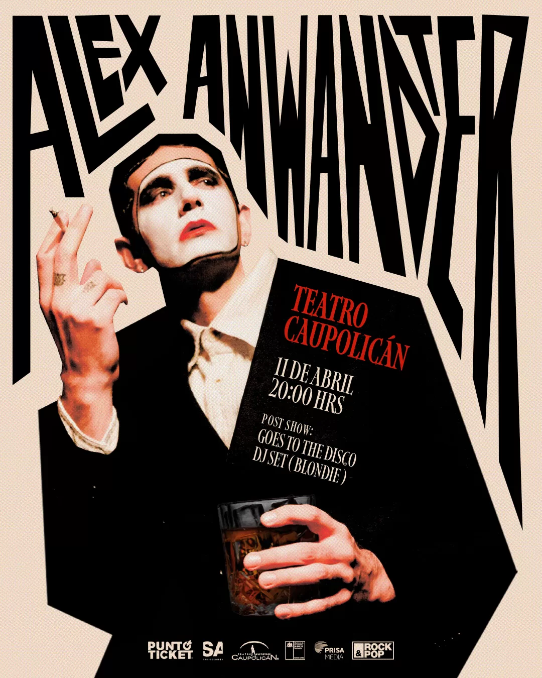 Este viernes 11 de abril, Alex Anwandter se presentará en el Teatro Caupolicán para un épico concierto. El músico ganador del Latin Grammy hará un repaso por éxitos como “Tormenta”, “Siempre es Viernes en mi Corazón”, “Cómo Puedes Vivir Contigo Mismo”, “Tatuaje”, “Cabros”, “Locura”, entre muchos otros.