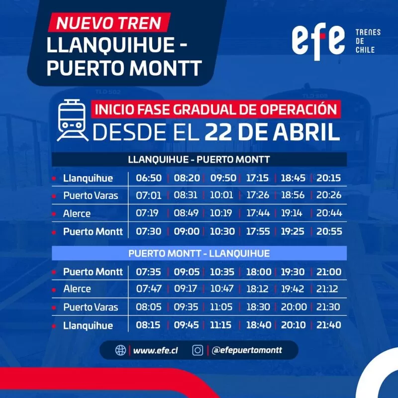 - Paradas: Alerce, Puerto Varas y Llanquihue.
