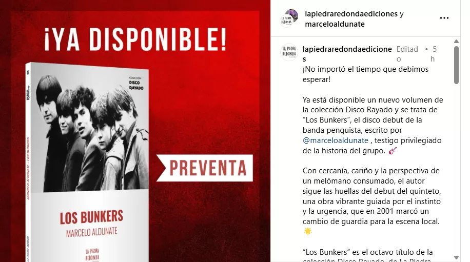 Los fanáticos de Los Bunkers tendrán que sumar un libro a la lista, pues próximamente se lanzará un escrito sobre los inicios de la banda. Se trata de Los Bunkers, escrito por nada más y nada menos que Marcelo Aldunate. El libro es parte de una nueva edición de la colección Disco Rayado,