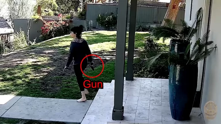 En las imágenes publicadas por el LAPD, se puede ver a los agentes buscando a los sospechosos en el barrio de Eagle Rock el 8 de abril, cuando encontraron a Shriner en su patio trasero con su arma desenfundada.