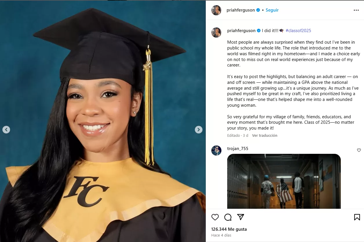 Es así como también reflexionó sobre como logró compatibilizar la actuación con la etapa escolar. "Equilibrar una carrera de adulto, dentro y fuera de pantalla, mientras mantenía un promedio de calificaciones por encima del promedio nacional y aún crecía, ha sido un viaje único", mencionó la actriz.