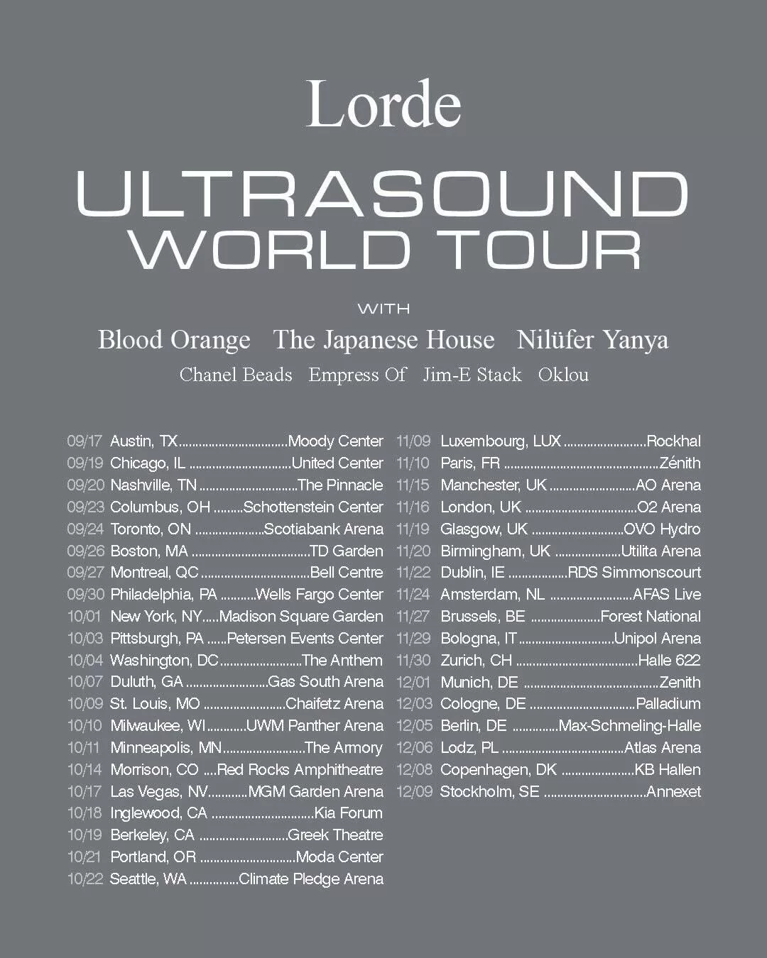 La gira mundial de Lorde comenzará el 17 de septiembre en la ciudad de Austin, Texas, Estados Unidos. Esa no es la única ciudad del gigante norteamericano que gozará del show, pue se suman localidades como Las Vegas, Seattle, Portland, St. Louis, Philadelphia y Boston. Por otra parte, se contemplan conciertos en Canadá.