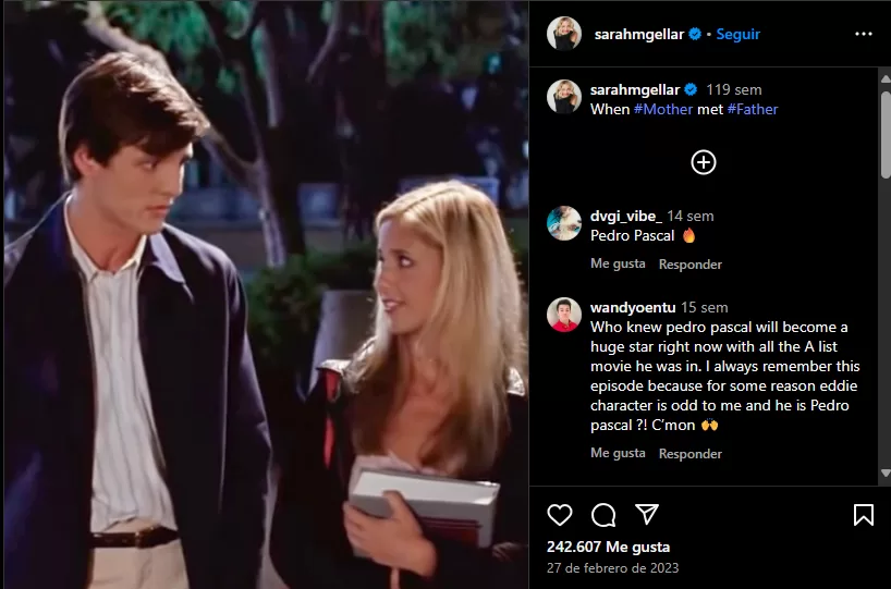En una reciente entrevista, recogida por Elle, se le consultó a Pedro Pascal respecto a una foto con la protagonista de la serie, Sarah Michelle Gellar. Es así como el chileno recordó su experiencia en el set de grabación de Buffy Cazavampiros.