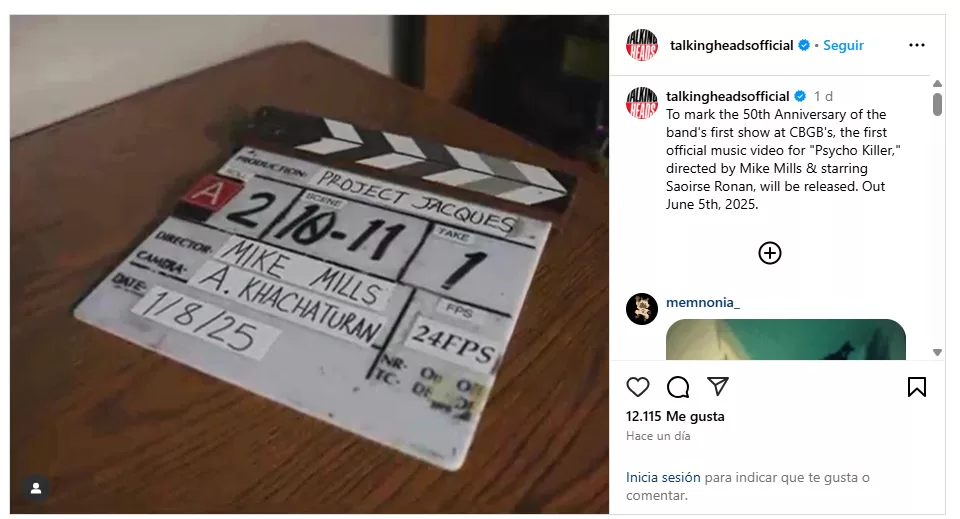 El martes por la noche, las cuentas oficiales de Talking Heads en redes sociales publicaron una foto del calendario de rodaje del video, el 8 de enero de 2025. El pie de foto confirmaba: "Para conmemorar el 50.º aniversario del primer concierto de la banda en CBGB, se estrenará el primer video musical oficial de 'Psycho Killer', dirigido por Mike Mills y protagonizado por Saoirse Ronan. Estreno el 5 de junio de 2025".