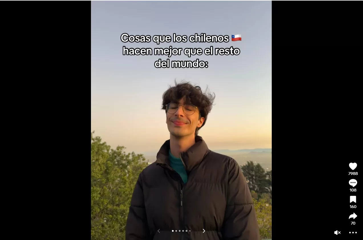 El video del joven italiano acumula miles de visualizaciones y likes, pues en este enumera cosas que le fascinan de los chilenos.