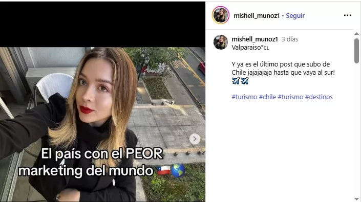 En concreto, la turista ecuatoriana Mishell Muñoz se hizo viral a través de redes sociales al revelar que Chile podría ser más visitado, en caso de que se promocionara de una mejor manera.