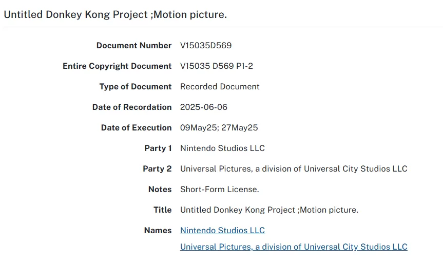 Según lo reportado por Hobbyconsolas, ambas productoras han registrado una película de Donkey Kong sin título definitivo ante el sistema de registro de copyright. Con esto confirman los rumores sobre una nueva entrega que llega ampliar la saga.