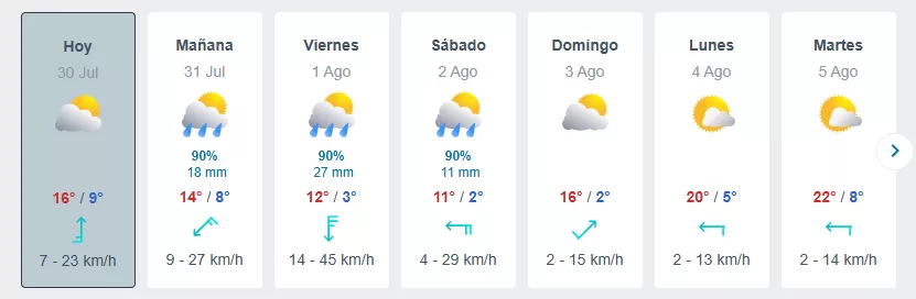 El pronóstico indica que además de caer precipitaciones, caerán bastante las temperaturas. Por lo que nos enfrentaremos no solamente a precipitaciones sino a mínimas muy bajas en estos días.