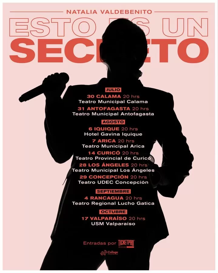Esto Es Un Secreto, el innovador show de la comediante chilena Natalia Valdebenito, continúa su recorrido por Chile y el mes de julio se viene con nuevas fechas por diferentes ciudades del país como Arica, Iquique, Calama, Curicó, Valparaíso y más.