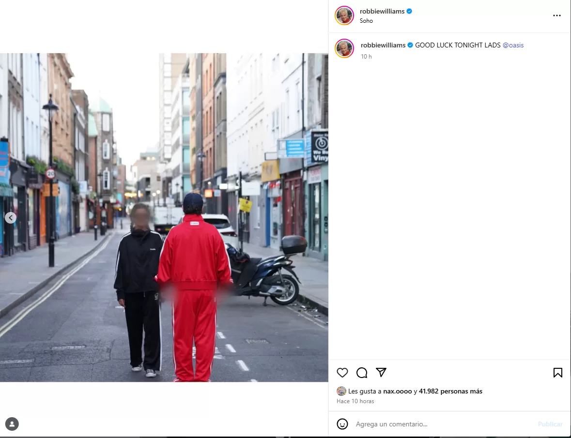 Este viernes es el día de Oasis, ya que Noel y Liam Gallagher se reunirán por primera vez desde la separación del grupo. Y Robbie Williams mostró su apoyo a su antiguos rivales de una forma particular.