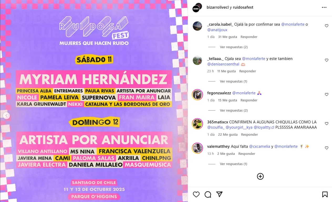 ¡Cada vez conocemos más detalles! Recientemente, se reveló el line up por día del regreso de Ruidosa Fest. Recordemos que el festival creado por Francisca Valenzuela se concretará el fin de semana del 11 y 12 de octubre.