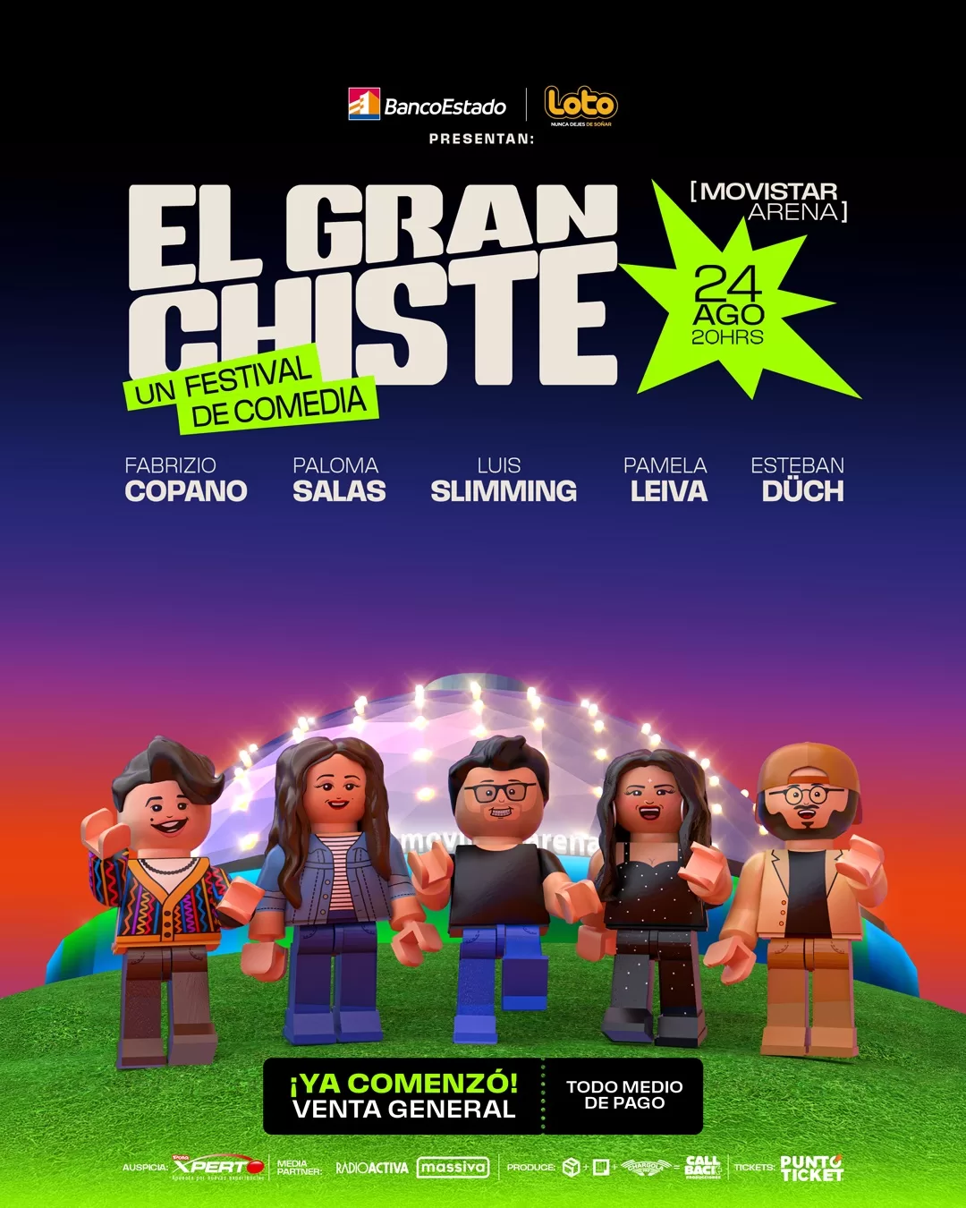 Este domingo 24 de agosto se celebrará la primera edición de El Gran Chiste. El esperado festival de comedia se llevará a cabo en el Movistar Arena y contará con la participación de algunos de los comediantes más destacados de nuestro país.