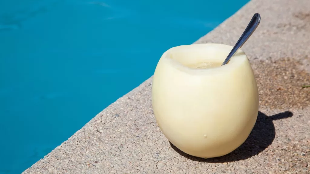 El sitio describe así al segundo lugar de su lista: "El melón con vino es una bebida chilena que consiste en un melón honeydew (tuna) ahuecado y relleno de vino blanco frío y azúcar glas. Esta mezcla dulce y pegajosa es especialmente popular durante el verano y suele compartirse entre amigos en asados, celebraciones y picnics".