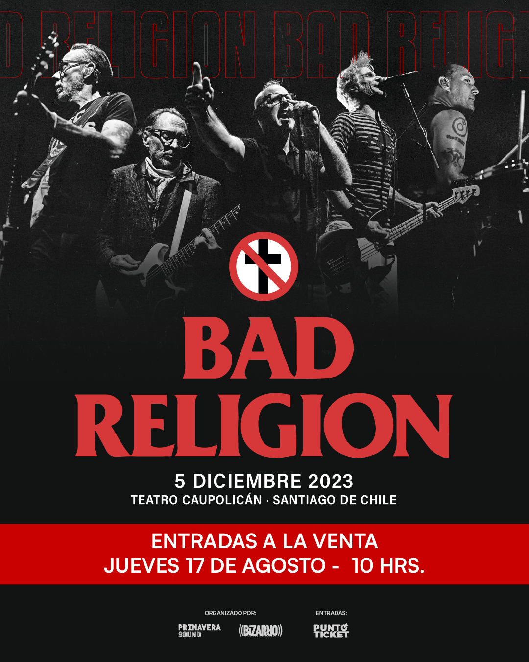 La cita con Bad Religion está agendada para el próximo 5 de diciembre del presente año y tendrá lugar en el Teatro Caupolicán.