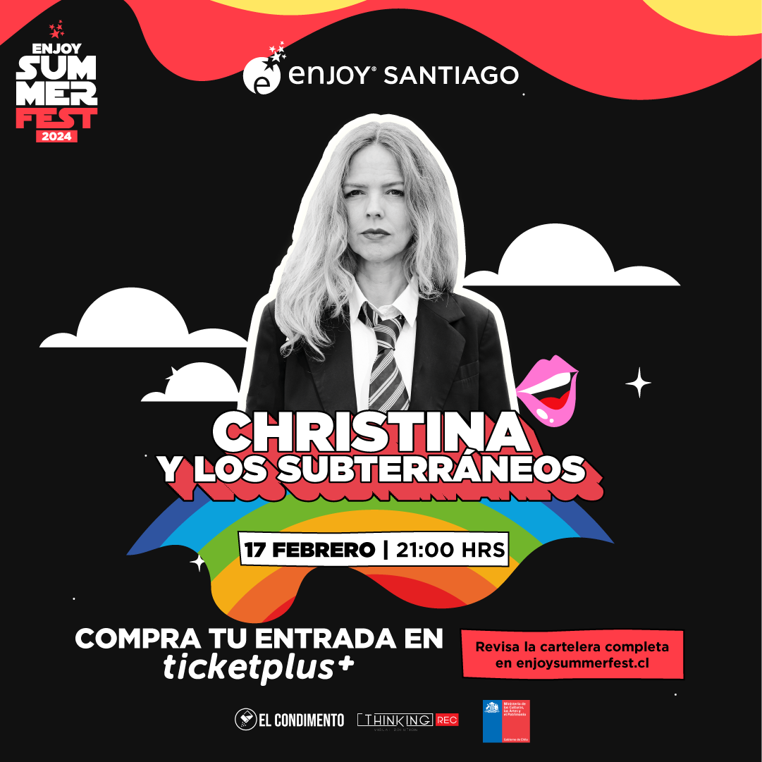 La gira de Christina Rosenvinge terminará el 18 de febrero en el Salón Ballroom de Enjoy Pucón. Cabe señalar que las entradas para los distintos shows se podrán adquirir a través del sistema Ticketplus.