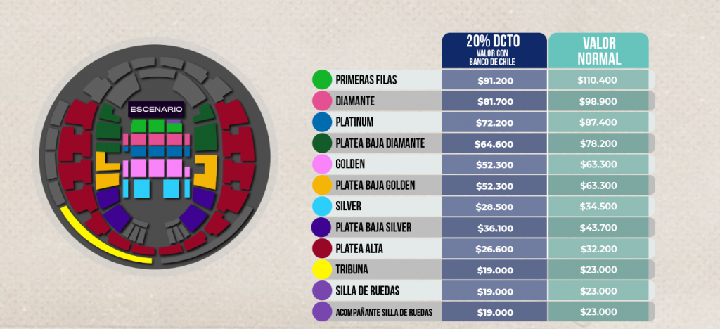 Las entradas estarán disponibles a partir del día lunes 26 de septiembre a tráves del portal de Ticketplus.