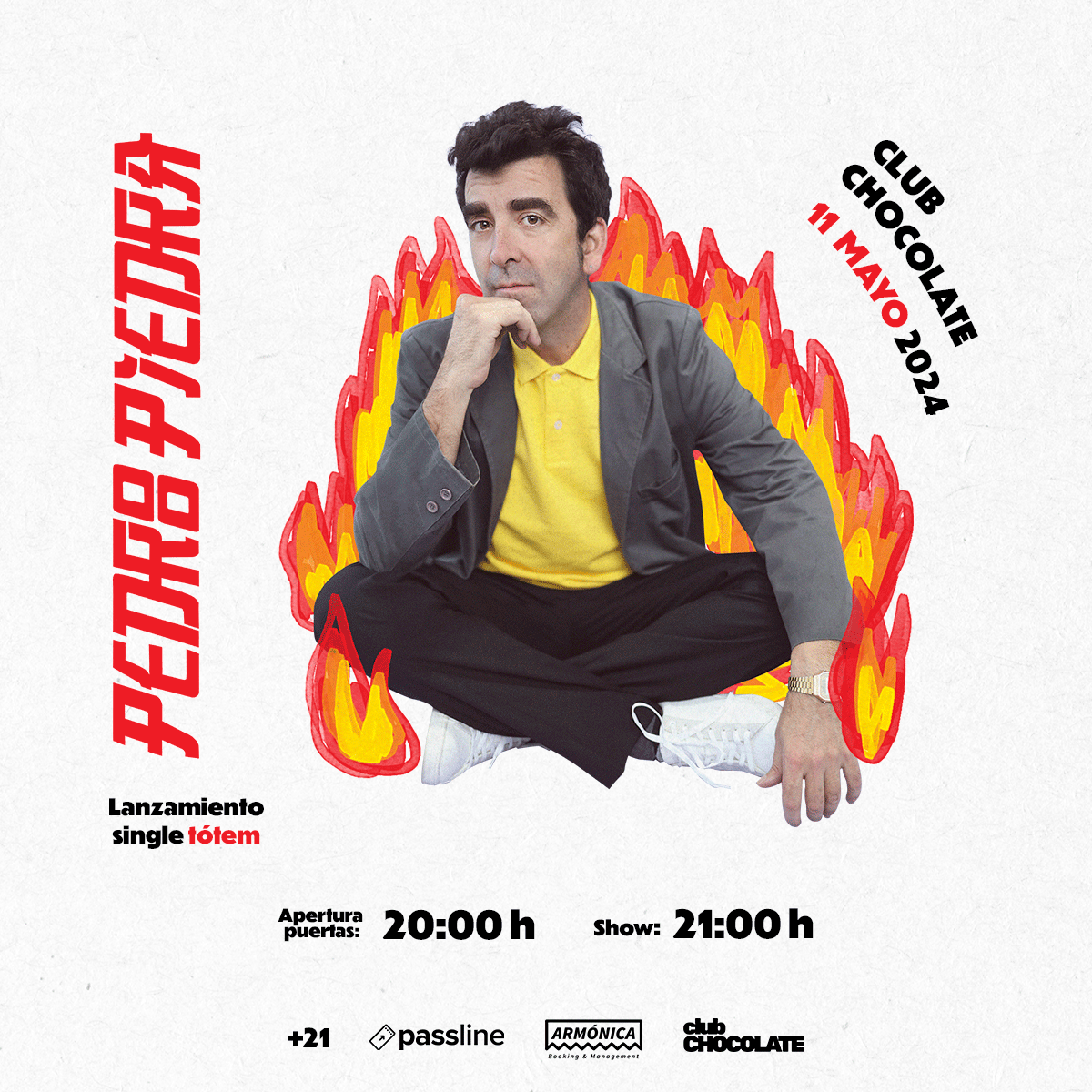 La presentación de Pedropiedra será a las 21:00 hrs. del día 11 de mayo en el Club Chocolate, ubicado en Ernesto Pinto Lagarrigue 192, Recoleta. La puertas del local se abrirán para la entrada del público a las 20:00 hrs.