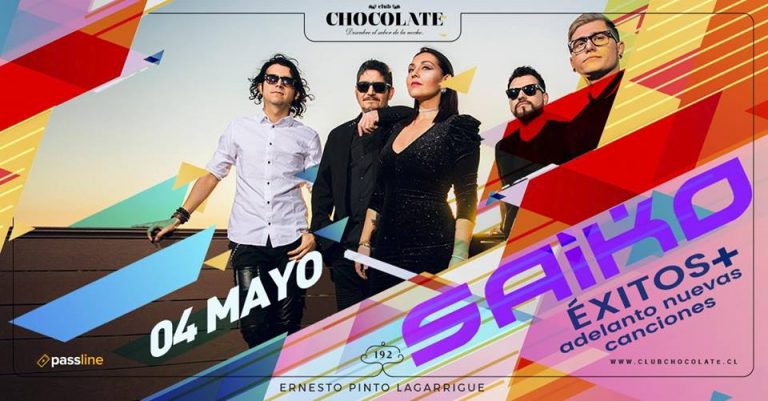 Un nuevo concierto de la banda Saiko. Se presentarán este sábado 4 de mayo en Club Chocolate y repasarán sus clásicos. Recordarán “Debilidad”, “Limito con el sol”, “Azar”, “Cuando miro en tus ojos”, entre otros.