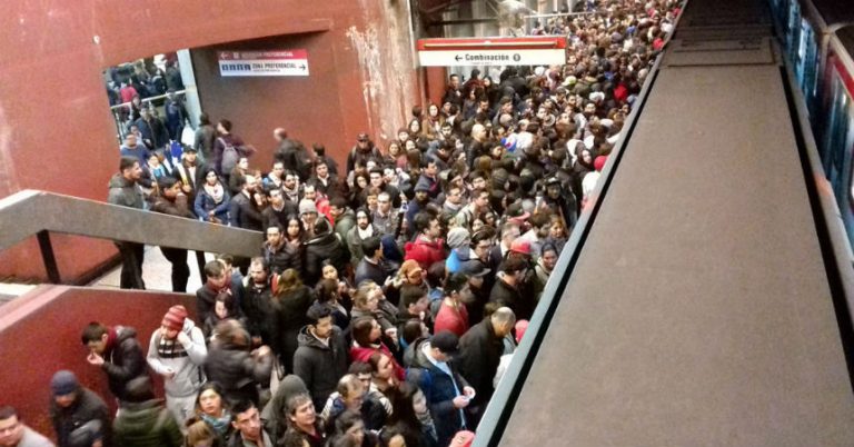 La estatua fue teñida de color rojo en la víspera del primer aniversario del estallido social del 18 de octubre.