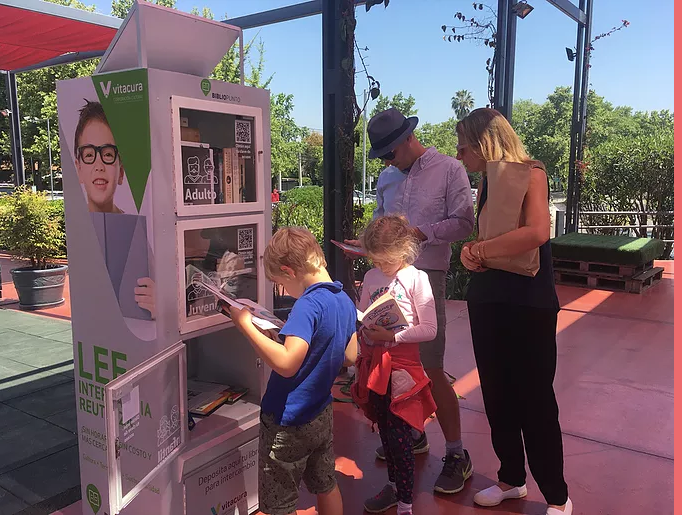 Entre los beneficios de Bibliopuntos, están que funciona con energía solar y que permite que las personas intercambiar libros.