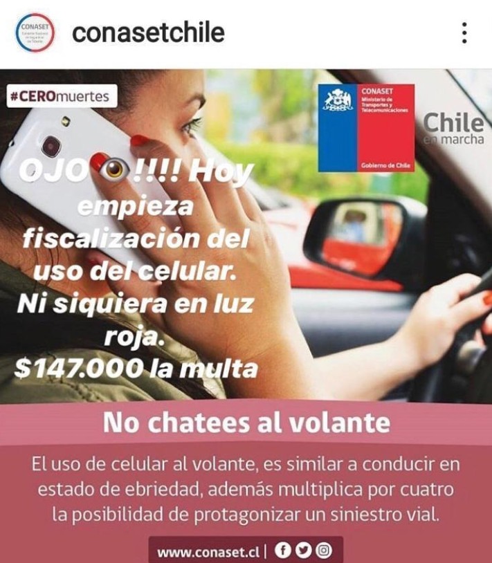 CONASET desmiente imagen de WhatsApp sobre multas y fiscalización por el uso de celulares mientras conduces