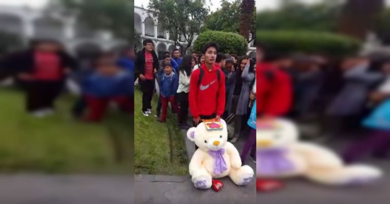 Historia de joven que esperaba a su novia con peluche gigante terminó con transmisión en vivo
